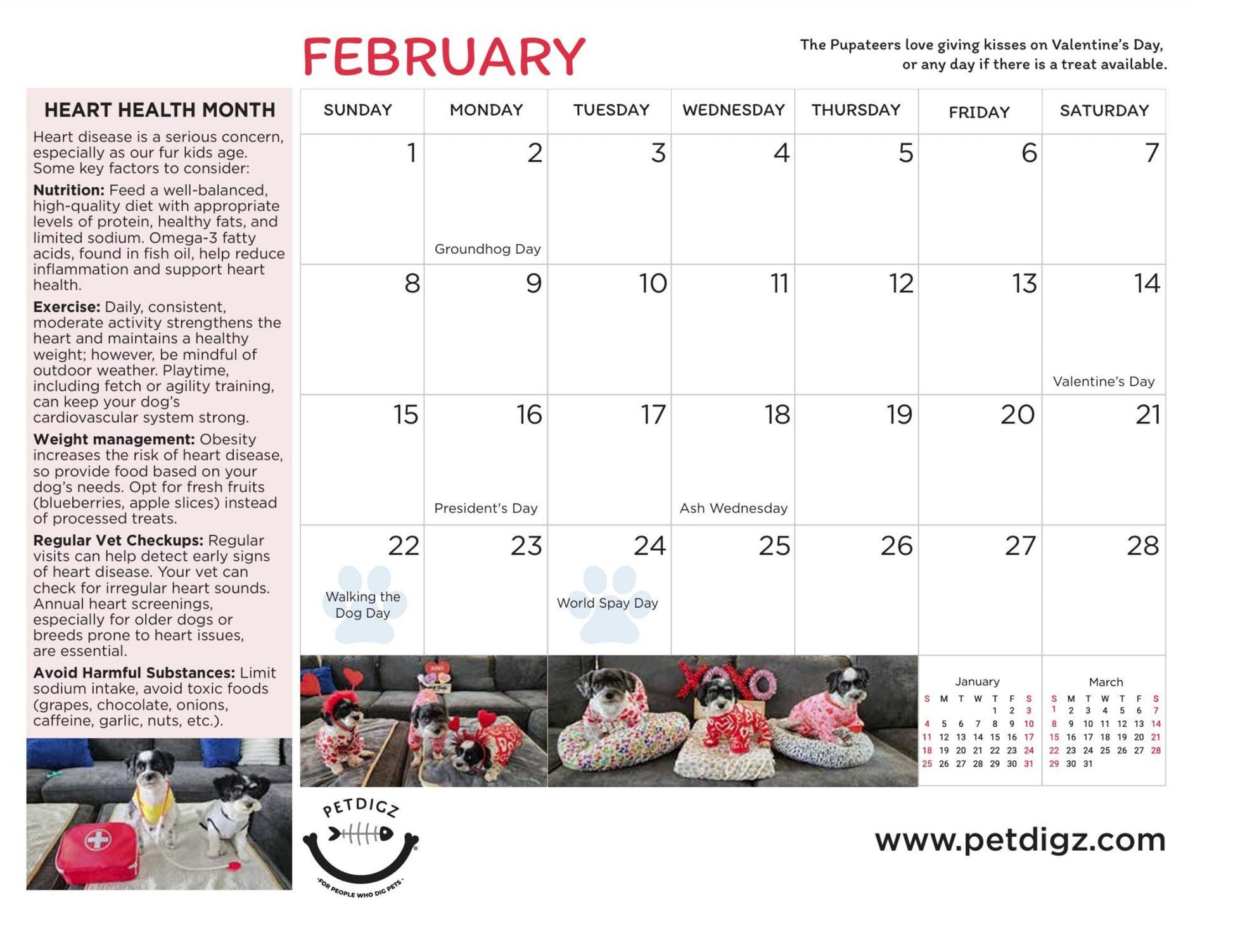 PetDigz's 2026 12-month Pupateers Pawsitive Living Calendar was designed to bring smiles to your days with adorable doggie dress-up pictures paired with practical pet care tips.